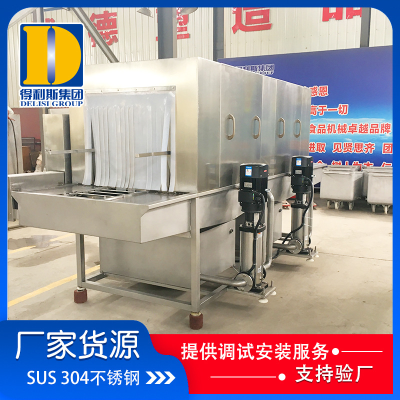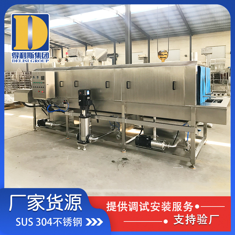 1. 清洗機(jī)一高壓噴淋沖洗為主要清洗方式,以約80℃熱堿水為主要洗滌劑,以約80℃熱水為主要清洗力進(jìn)行清洗;