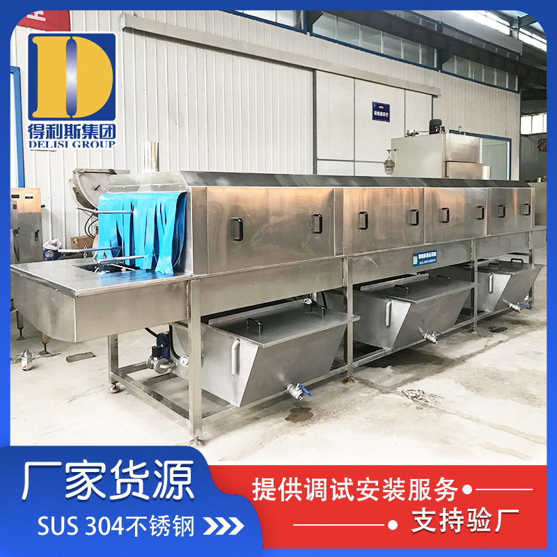 2. 設(shè)備有熱堿水噴淋段、熱水噴淋段、清水噴淋段、消毒水噴淋段、烘干段等幾部分組成,其中消毒水噴淋段及烘干段可根據(jù)客戶要求定配。